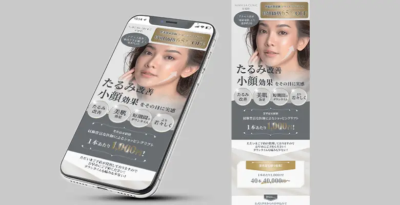 韓国式美容鍼のお試しキャンペーンに向け、カウンセリングやお申込みにつながるLPファーストビューを制作しました。